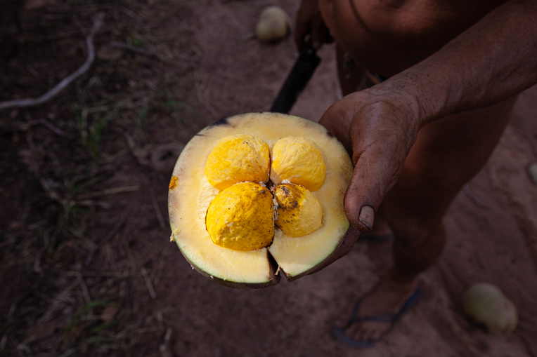 The pequi harvest runs from October to early December, when families routinely visit the groves. It is then that things can go awry. The pequi has many owners—beginning with the cayman, from whose body it sprouted, followed by dispersing birds like macaws, parrots, and hawks, and finally the pollinators, especially the hummingbird. The grove is a site of shared ownership: alongside humans, the itseke-owners watch over the trees, ensuring their fertility and beauty. They are as much responsible for caring for the groves as humans are.