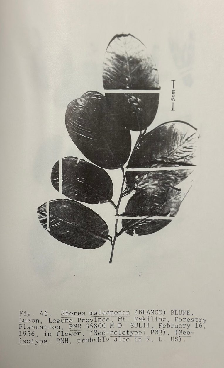 My dad wrote of the species as Shorea malaanonan (see Figure 2), a name given by a different scientist, in a dissertation on the Dipterocarpaceae family my dad completed in 1983. This Latin determination, in his view, was somewhat fuzzy but an impending departure to the United States in 1985 prevented him from scrutinizing the identification further.
