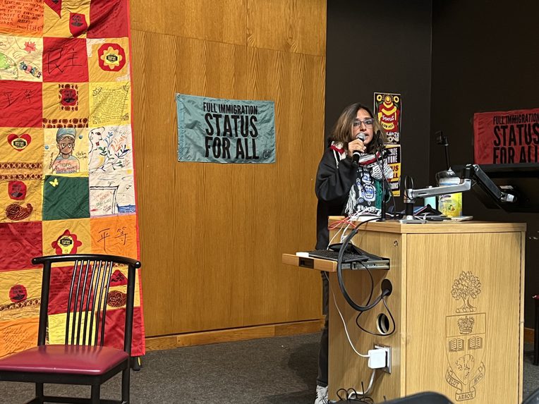 SJ [9:28]: In the segment you just heard, Syed Hussan of the Migrant Workers Alliance for Change discusses the unimaginable ways displaced people are exploited and made to suffer by settler colonial governments and corporations. The grueling account Syed shares with us connects with another point in Harsha Walia’s speech, about displacement and limited mobility.