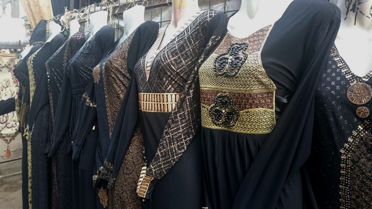 At around 6 a.m. every day, we take our children to the school bus stop nearby. As moms, we are always in a hurry, so we wear anything. We mostly wear abayas or prayer cloaks. I noticed that one of my neighbors wears elegant abayas every morning. I asked her where she got them, and she said that her husband works in Saudi Arabia, so she buys them whenever she visits. I once saw her going out with her family at night and she was wearing horrible clothes: nonmatching pants and an ugly blouse . . . Abayas grant a certain prestige but maybe that’s not always what a woman wants, because this prestige from abayas denotes a veneration associated with the elderly.