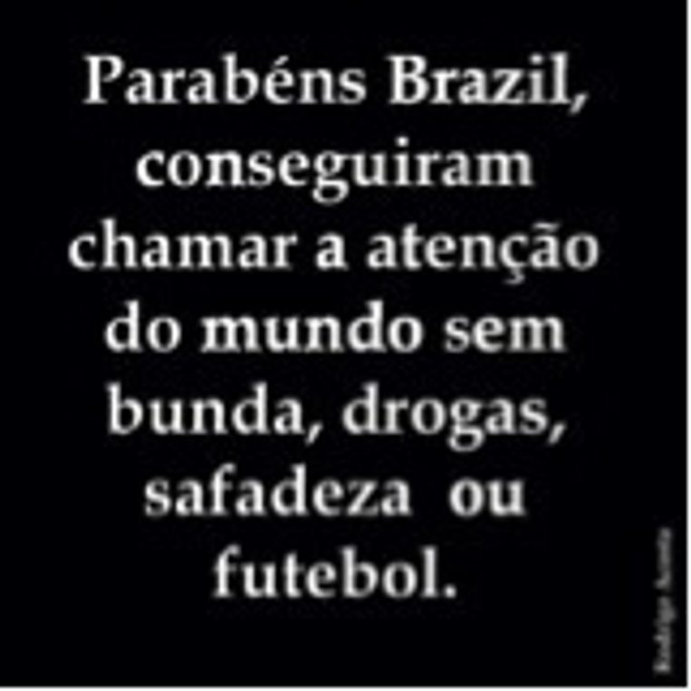 In early June, 2013, while my friends in São Paulo were discussing politics through the night with their peers on Facebook, my informants in Baldoíno—a village of fifteen-thousand people located in the northern coast of Bahia—were still using Facebook to talk about everything other than politics.[1] In São Paulo, the news of protests first circulated through Facebook and later moved to traditional news outlets, but in Baldoíno, it was shown on TV and then gradually started to disseminate through Facebook. After the protests appeared on TV, the initial posts shared by my informants were generic messages decrying “corrupt politicians,” such as the image below that says: “Congratulations Brazil, [you] could raise the attention of the world without [displaying] butts, drugs, dirty deeds, or soccer.”