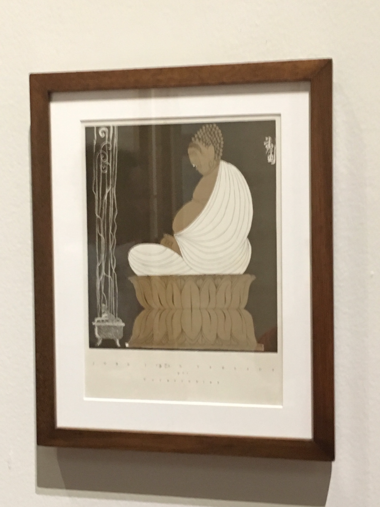 A final implication: this film curatorial approach enables us to reconfigure the very notion of cross-cultural juxtaposition (Marcus and Fischer 1986) in that Covarrubias’s Bali films serve as a counterpoint to Gamio’s nationalist objectives. I had come across Gamio’s commemorative plaque after having visited Pasajero 21/Passenger 21, the ongoing exhibition at Bellas Artes on artist José Juan Tablada’s visions of Japan. Amid drawings, paintings, poetry manuscripts, and film fragments indexing Tablada’s travels and encounters with Japan, the visitor can also pause to look at Covarrubias’s hilarious caricatures of his friend Tablada’s “Japonismo” in which a deformed Tablada is shown sitting in the lotus position and dressed in a Kimono (figure 3).