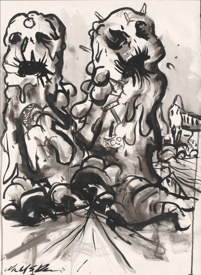 This story is odd enough, but the other major theory of Blob’s origin is pure madness. Still, it befits somehow the insanity of our times and helps to explain some of Blob’s behavior over the past three thousand years. In this story, Blob is a fallen sun god, an antichrist banished from the heliocratic pantheon to inhabit the metallic core and mantle of the Earth. Blob has plotted its revenge ever since, spending eons contriving and executing a Tellurian insurgency against the Sun and its solar economy on earth. A variant narrative is that Blob attained consciousness through the accumulation of hydrocarbon corpse juice, becoming a pestilent, dead earth-being that has made solar energy its prey. In any case, as with Gold’s theory of mobile petrobacterial colonies, Blob seems to be capable of redistributing itself. Ever since the rise of Zoroastrianism, Negarestani argues, Blob has been drawn to the Middle East and the excitational properties of its desert monotheisms, whose ultimate goals are to extend lifeless conditions of desert apocalypse across the Earth’s surface. In turn, the petroleum Blob concentrated in the Middle East has attracted, stimulated, and accelerated technocapitalist war machines that use oil to grease, fuel, and recompose their parts. This assemblage of petroleum, monotheism, and War-on-Terror-machines now composes Blob’s millenarian insurgency against the Sun.