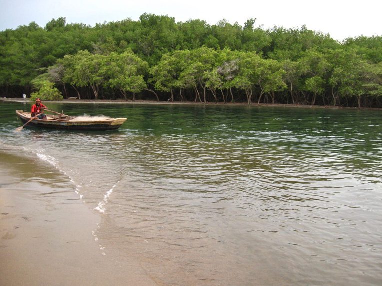 Image 9. Following the Massacre River less than thirty kilometers north, the border river lets out into the Pepillo Salcedo lagoon, where many residents fish for a living. Fresh water fish are more valuable than many salt water species, and lagoon fishing practiced with nets and sometimes poison can be traced back to Hispaniola’s indigenous Taíno residents. A Haitian fisherman sat at the crossroads of two nations and two waterways, floating between the Dominican Republic and Haiti, at the place where the lagoon opens up into the Atlantic Ocean. Nets of a smaller mesh were recently banned in the Dominican Republic, but this fisherman and others floated in the legally murky spaces just offshore of the nation. Fishing regulations are difficult to enforce in an environment where those best equipped to navigate are fishermen themselves, and where those charged with law enforcement are entangled in extralegal agreements with local businesses.