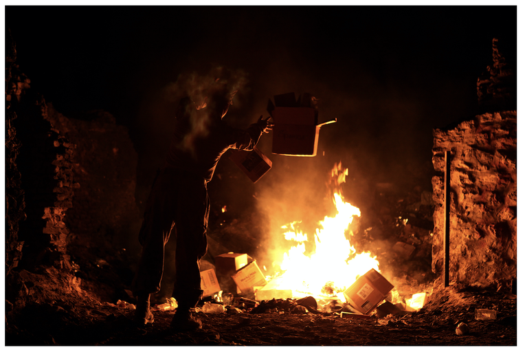 Army guidelines for forward base construction imagine the local environment itself as exploitable, if also hostile. This right to “pollutable” land is central to colonial violence (Liboiron 2021), and indeed central to the military infrastructure by which the latter is executed. In this case, though, security protocols demand waste not be allowed to “endanger” local civilians, become weaponized by enemies, or require soldiers to risk their safety while disposing of it. At the same time, waste cannot be allowed to accumulate inside a base. In an inversion of what Sophia Stamatopoulou-Robbins (2019) calls “waste siege” imposed from the outside, base waste is unexternalizable. So it is burned in fires accelerated by JP-8, a kerosene-based fuel used in nearly all US and NATO military aircraft and vehicles. The same relatively low combustion temperature that makes JP-8 useful for burning trash and human waste also contributes to the generation of fine particles and hazardous organic compounds in the smoke. Even as the military assumes a prerogative to pollute, soldiers and their waste can never get very far from one another.