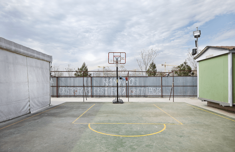 Within that context, acknowledging the advantages, the limitations, and the potential dangers that the spectacle may carry, our selected medium towards—an admittedly small—contribution to these other discourses is the current photo essay. The photo essay speaks primarily the popular language of professional photography that is used by the mass media. Yet the information that our images and the text communicate together is different than the predominant one, as it provides a framework that we aim to be radically different from the existing ones. Crystalizing more than fifteen years of ethnographic research in several borders and cityscapes of the Mediterranean and fifteen years of visual documentation of contemporary Greece we aim to frame the refugee crisis in terms of its materiality. Building on the access we had to refugee camps, we aim to embed the refugee materiality—the camp—within the material context of the European economic and political crisis: the ruins. Mainly the ruins of the economic boom of 1990s–2000s that paved the way for the Greek version of the European economic crisis. By making explicit the relationship between ruins and camps we aim to provide an exegesis of the “refugee crisis” as simply an expression of the European political/economic crisis. We suggest that through a systematic implementation of a visual and textual language of emergency and danger for Europe, supposedly due to the refugee crisis, within their political and media discourses, the European elites are trying to win time from the systemic failure of the European neoliberal project. Although these thoughts have been expressed before (Dalakoglou 2016a), the visible coexistence of the camps and the ruins shouts loudly the connection between the European political crisis and the attempts to translate it into an imagined “refugee crisis.”