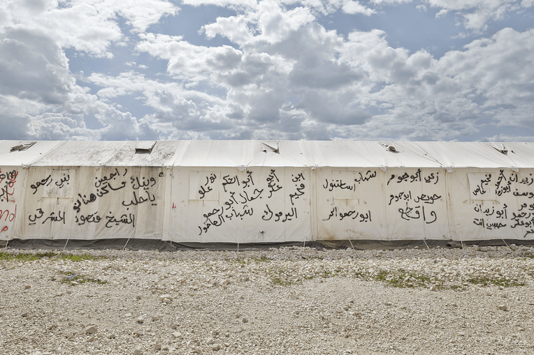 Katsikas camp, Ioannina, 2016. Slogans on tents in different versions of Arabic. One can read the phrase: “The ones who are here, will be returned (deported),” while another is the declaration of someone missing his son and his daughter. A group of other refugees use as point of reference Istanbul, where perhaps they stayed for a while, while others mention their neighborhoods and towns in Syria. (Thanks to Yunes Saramifar for his help with the translation.)