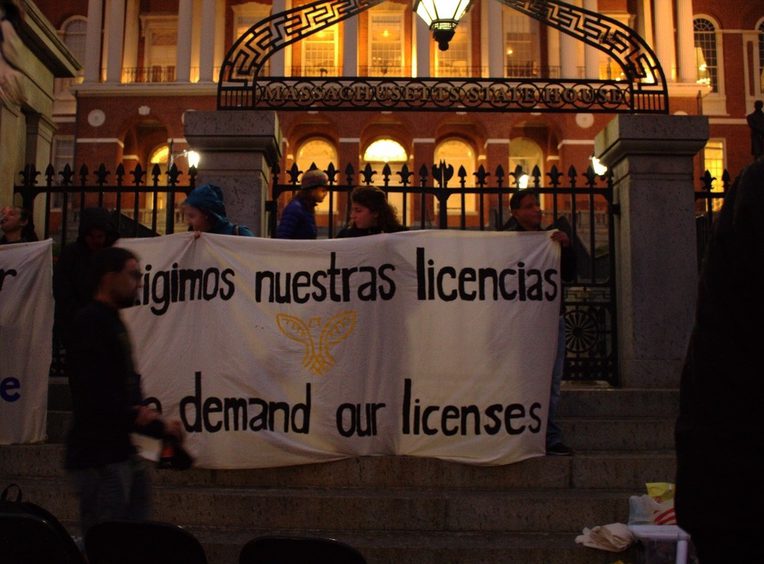 As part of the Massachusetts driver’s license campaign, illegalized residents organized encampments, hunger strikes, public audiences, and marches throughout the state. The very success of the driver’s license campaign depended on their on and off-line public presence over the course of two decades. Rather than serving as “evidence” of immigrant struggle or resilience, the anonymized photographs challenge expectations that the images must contain subjects who are ready to submit themselves to scrutiny in order to have a “truth” or their presence recognized.