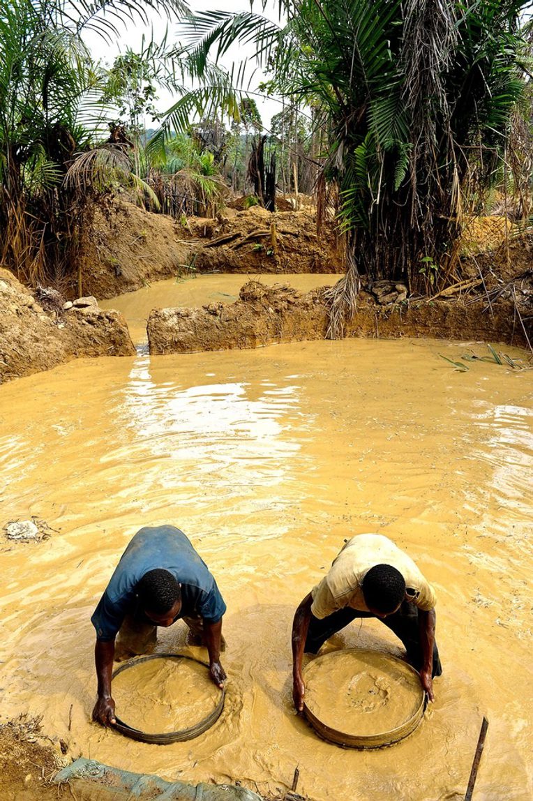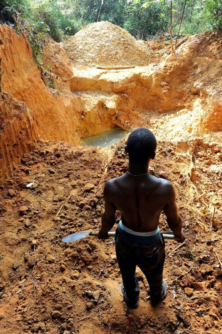 In the past two years thousands of young men have made the trip to Mayengema and to other small settlements throughout the Gola Forest. The more established and accessible diamond fields to the north and west have become crowded and dangerous. The rapaciousness with which they were mined during Sierra Leone’s war has convinced many that the fields are virtually tapped out. Too many authorities claim ownership over the sites, and there is close scrutiny of who goes in and what comes out. These Gola Forest deposits, by contrast, are harder to access and thus potentially more rewarding. They hold the promise of virgin territory and less competition for young men willing or desperate enough to leave everything else behind.