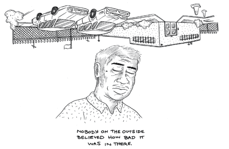 Teaching with graphic texts is both about closure but also its opposite: abolishing enclosure. Bringing sequential art or graphic texts into the classroom, especially when we’re teaching about less visualized forms of incarceration or carceral experience, supports the kind of holistic understanding we as anthropologists aim for, while also expanding the possibilities for ways that students can come into closer contact with these spaces and experiences. Detainees and other incarcerated persons are not invisible, but in the classroom, without accurate, engaging, and multiply-representative visual media—the kinds which visual anthropologists and illustrators create every day—they can feel that way. Arguing for the use of graphic texts in classes that center incarceration, generally, as a way to “visualize abolition,” Michael Sutcliffe (2015) notes that “students can approach visual media as a meeting point with their lives rather than as a departure, and look to the ways visual rhetoric complicates conventional readings, especially around particularly affective topics” (2). Teaching for abolition, then, doesn’t just involve learning about oppressive, community-harming carceral structures, but feeling them.