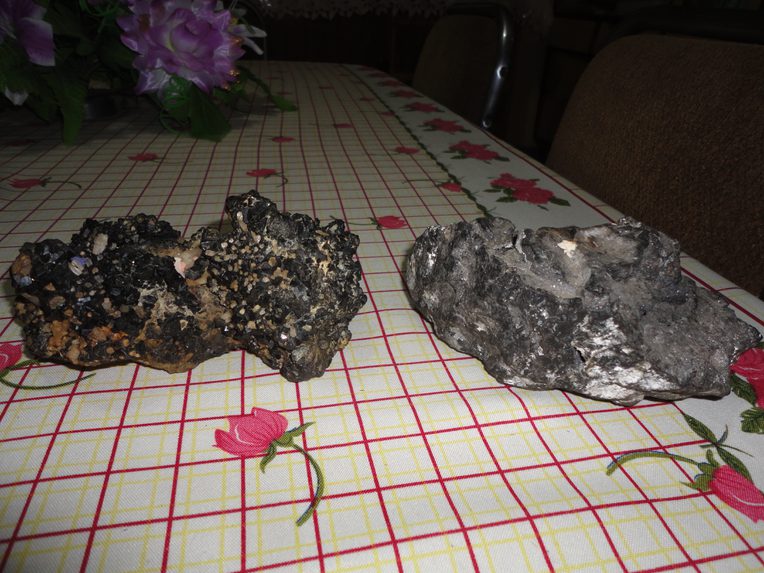 For most of these “small-scale” tin miners, as they are typically understood, the mine is an extension of the domestic space, where people eat and drink and occasionally sleep. Important festivals, such as Carnival, include underground décor and ceremonial festivities (Figure 3). Family members who might not actually labor in the mine accompany miners for these events, from the family kitchen to the subterranean family plot. The mine comes back into their aboveground lives, too, in the form of decorative minerals, hunks of ore that commemorate particularly rich strikes or appear particularly attractive (Figure 4). Sprinkled with colorful confetti and splashed with a few drops of beer—the universal benediction of the Bolivian highlands—these rocks are blessed during family ceremonies alongside Christian iconography, household appliances, and unreliable satellite hookups.