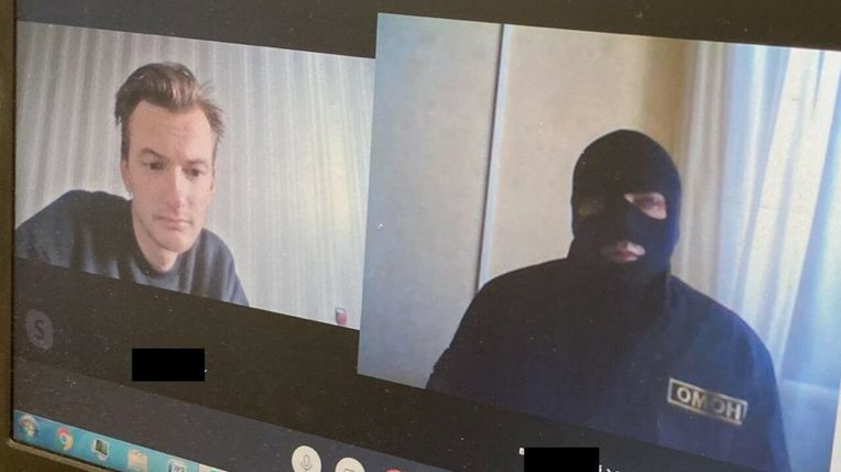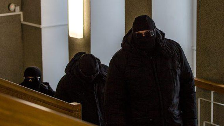 Fake witnesses are also granted protection and are separated from the crowd during, before, and after hearings (see fig. 3). They are brought to trials in a centralized manner and are escorted by militia to avoid face-to-face encounters with the crowd. Fake witnesses are also often moved to separate rooms and/or buildings. They are allowed to give their testimonies through Skype, often with their balaclavas on (see fig. 4).