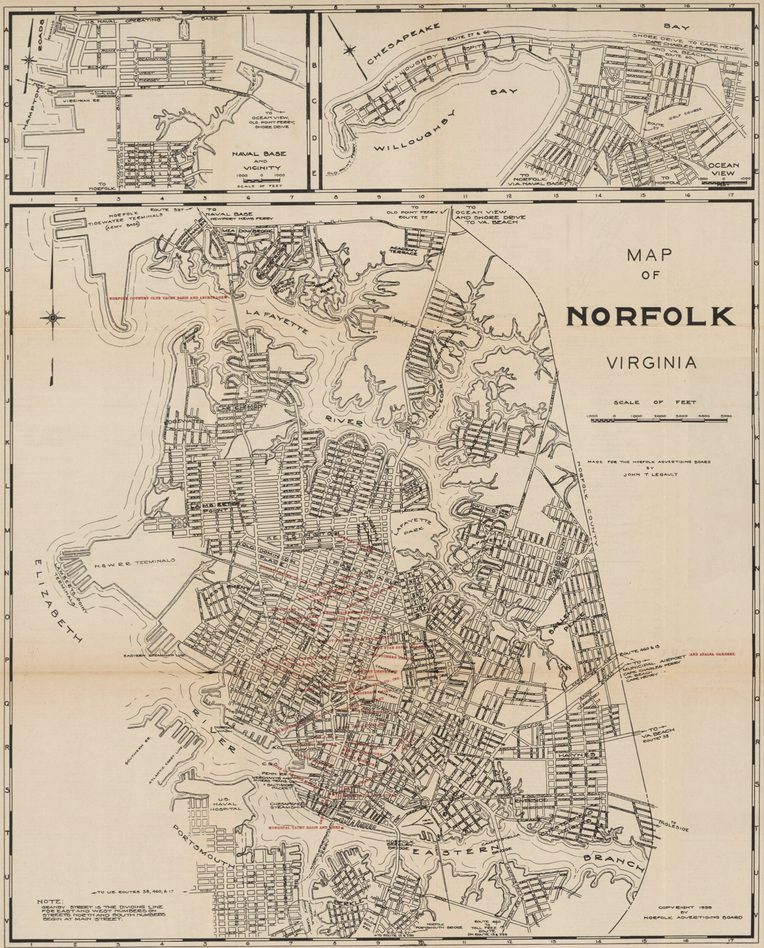An “historic southern port” (Wertenbaker 1931), Norfolk sits at the crossroads of north and south, on the mid-Atlantic at the mouth of the Chesapeake Bay. Bordered on all sides by water, the city is crisscrossed by inlets and creeks at a uniformly low elevation.