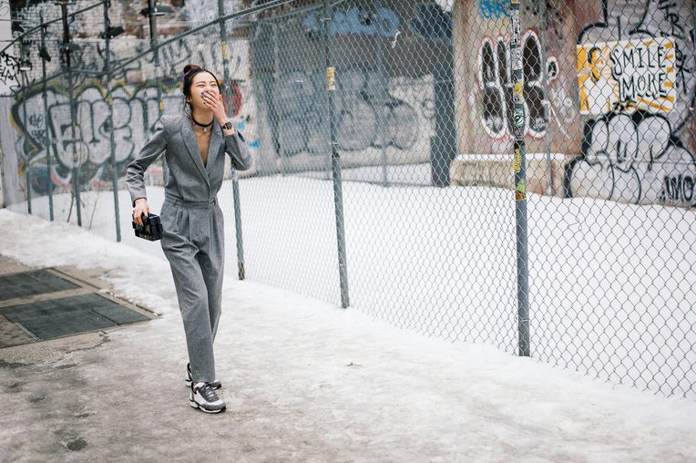 During my time at Mercedes-Benz New York Fashion Week, I saw, interacted with, and took thousands of pictures of would-be street style stars as part of a larger project on the promotional role of street style imagery within the fashion industry. I became another conduit for the circulation of street style stardom. And I watched, over several seasons, as some street style stars rose to fame and others faded away. Some stars rose quickly, like that of Irene Kim, a Korean-American model and television personality, who captured the attention of the photographers outside the shows by dressing in bold colors, running up and down the street, twirling and spinning madly, skating on sidewalk ice, even mounting a stalled tractor on the corner of 11th and 26th. Kim made herself into a street style sensation through sheer force of will.