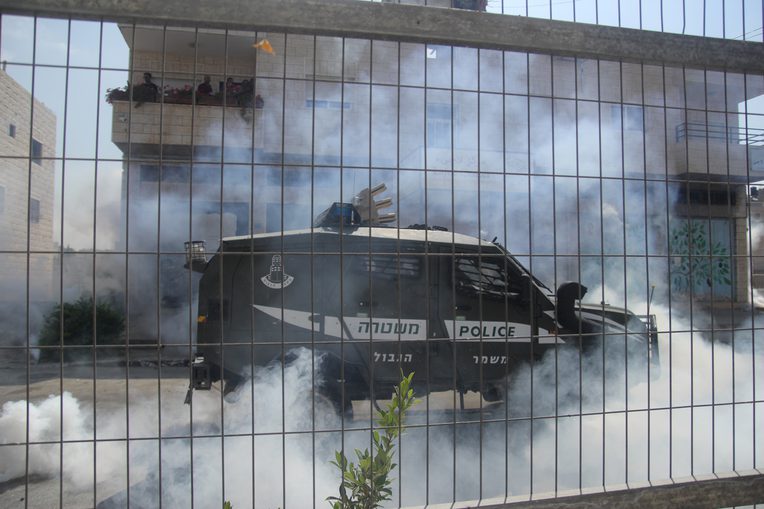 But there is a smell worse than skunk water. Tear gas can actually kill people. A Berkeley research team in concluded in 2017 that Aida was among the most tear gassed places on Earth. Soldiers shoot it either from a rifle-like weapon or in multiples from atop a jeep. Skillful protesters might hurl canisters quickly back toward the army while they spew their white spirals of gas. But tear gas forces indoors those not directly involved in protest. People are in the terrorized habit of rushing to shut their windows at the first acrid whiff of tear gas, because they know that when the Israeli army uses it, they use it in prodigious quantities. Noha Katamish, 45, died because a tear gas canister spun into her home in April 2014, and she could not escape its suffocating effects. Residents fear having an elder caught at home unable to close the windows fast enough.