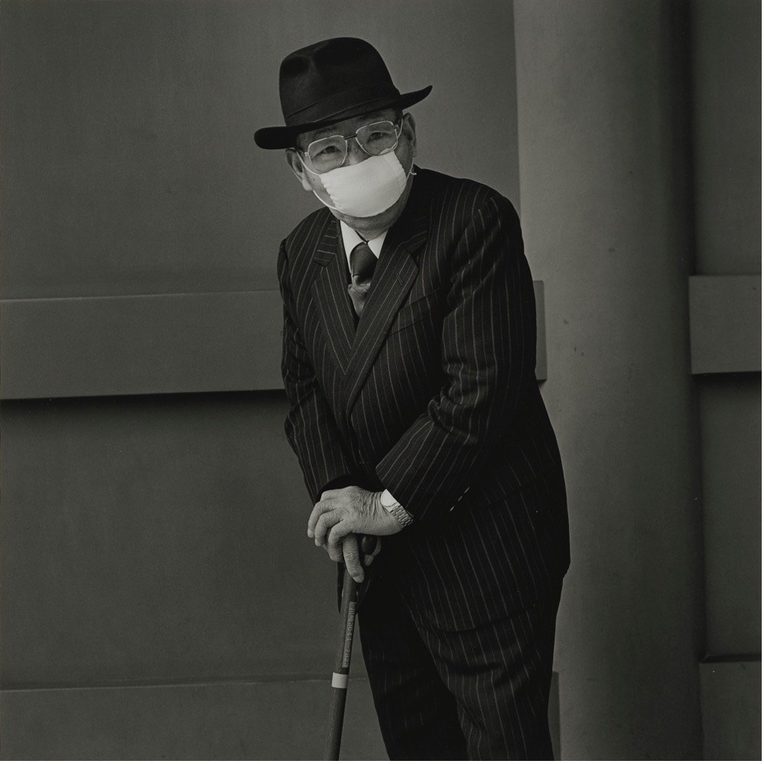 A mask is a material thing, but it is also an interpretive stance. Before March 2020, we would have read this differently. Now we all think we know what it means. Time works that way on people. Like aging, it is a form of deception as much as it is an unveiling of what we do not know. The backdrop, stark. The pinstripes, stately. The cane, sturdy. The stare, anybody’s guess. What is a portrait? Masks have pushed us to consider more carefully what mouth and cheek reveal and obscure. On the surface is a visage. Underneath lives an essence. Maybe it is in the hands, the crook of the back, not the stare.