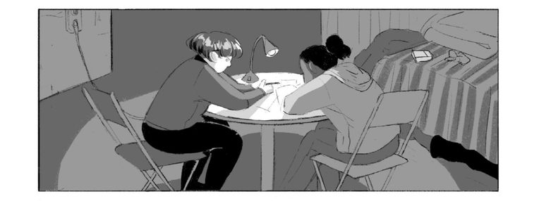 Centering Mossallam and her work in the morgue was thus crucial to how we depicted Anna’s participation in the revolutionary events around her. First, we depicted Anna’s contributions as auxiliary to Mossallam’s initiatives to locate missing persons. Far from being an instigator or leader of the movement, Anna’s role is supportive of Mossallam’s.