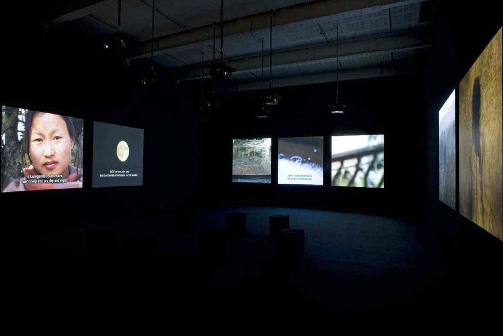 I sauntered into the current exhibitions hall after soaking in the Impressionism collection at the Institute, and I immediately overheard a voice referring to “an Indian artist who challenges stereotypes.” A man was introducing The Lightning Testimonies to a crowd of visitors, waiting in front of a dark entrance that seemed to lead nowhere. Walking through it, I found myself surrounded by luminous rectangles displaying scenes from everyday life in South Asia: a bonfire in Manipur, two men on a motorbike in Gujarat, sepia photographs and newspaper articles in Bengali. Unlike my conference paper, there was no helpful introduction, no explicit argument, and certainly no place from where I could see all eight channels at the same time.