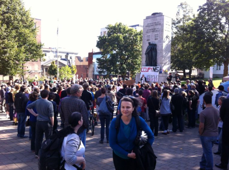 By way of conclusion, I would suggest there are lessons to be drawn from the Remembrance Day eviction and the events leading up to it. These relate to the importance of appreciating both the material and symbolic significance of space. For Occupy NS, city politicians, the police, and the broader public—supportive of the occupiers or not—the legitimacy and meaning of the occupation came to be interpreted through the lens of the space in which it occurred and the historical significance with which it is vested. Interestingly, the symbolic significance of Grand Parade and Remembrance Day ended up cutting both ways. On the one hand, Occupy NS was drawn, problematically to my mind and in some ways to their distinct disadvantage, into a rhetorical and gestural affirmation of the patriotic, nationalistic, and militaristic legacy embodied by Remembrance Day and the purposes it serves in the context of contemporary Canadian military adventurism. This not only diluted any radical critique of the status quo emanating from the camp, it also led ultimately to its violent eviction. On the other hand, given the widespread nationalist mythology that Canadian troops have always only fought and died for democracy, peace, and justice, when the mayor decided to use force to evict the occupiers on Remembrance Day in the midst of a rainstorm, public opinion turned significantly against the mayor and city council. This was only exacerbated by council’s tradition of holding important discussions and taking decisions in private and without official minutes, thus rendering the operation of municipal power completely opaque to the public.