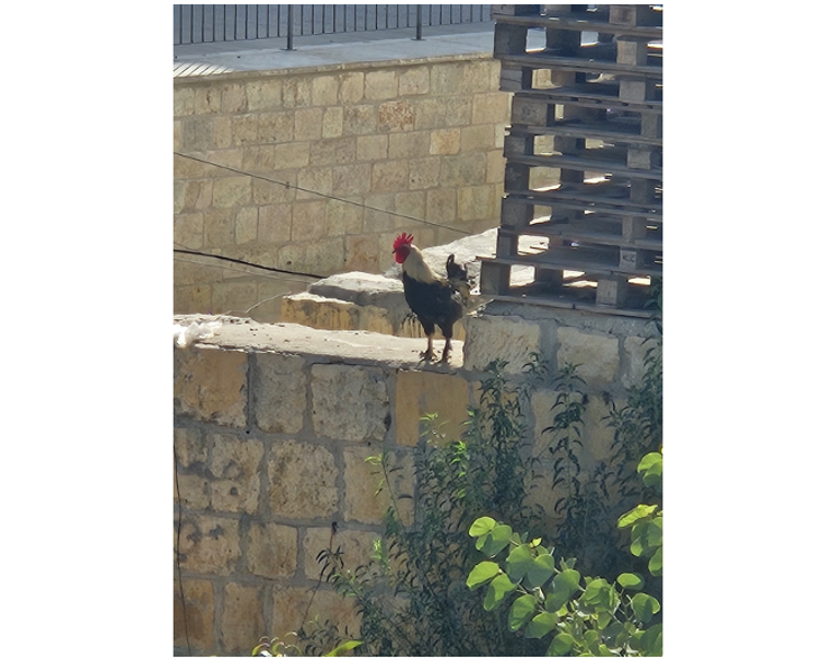 I grew accustomed to the sounds of the roosters in al-Tahta, as I did before with their symphonies in Wadi al-Joz, even as I wonder how the rooster crows in Lifta. The crows of the roosters eventually helped me find continuity between the locations of my own Palestinian places. Instead of feeling unsettled by the rooster’s disruption or hating the seemingly never-ending temporary, I decided, with the help of the rooster’s crow, to approach myself and the temporaries through love and towards return.