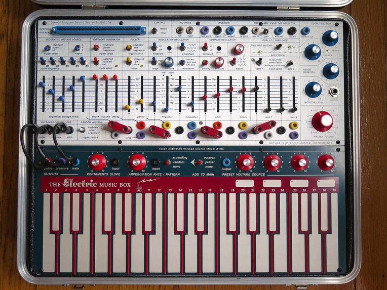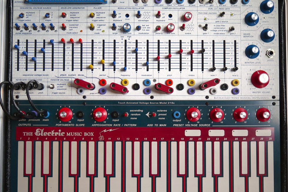 When I’m feeling creative, I plug in(to) my Buchla Music Easel, a device described by its inventor as an Electric Music Box. Hands at the knobs and sliders, skin on the capacitive keyboard, eyes trained on the blinking LEDs, ears cradled by headphones: I sit and search for new sounds like Theodor Adorno’s (1998, 32) child at the piano, knowing fully well that “the new is the longing for the new, not the new itself.” But instead of new notes or chords, the box promises me the command of a more fundamental, more scientific unit of sound: the electron.
