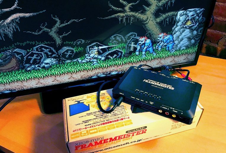 The elaborately named XRGB-mini Framemeister Compact Up Scaler Unit (“the Framemeister”) extends a different sort of suspension—of death. Released by the Japanese company Micomsoft at the end of 2011, the Framemeister is the video upscaler most favored by the retrogaming community. Upscalers, along with video processors like line doublers and frame doublers, make obsolete video signals and picture formats palatable to modern screens. Not only do upscalers defy death, they offer the heightened sort of vision that folklore attributes only to undeath. Through the Framemeister, pure RGB (red-green-blue) signals—with a pixel-perfect precision these games never knew in their previous life—are made accessible for continued consumption.