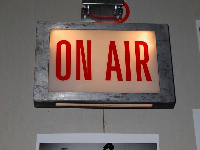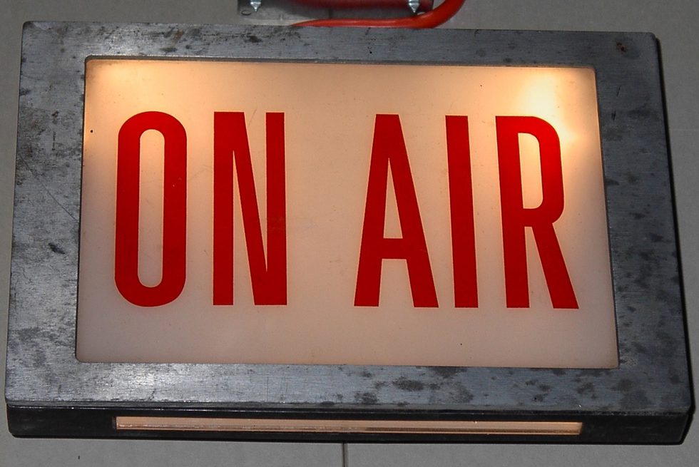Inside: Soundproof walls. Acoustic foam. A chair on wheels. A hanging mike. A script. A playlist. A job to do. A boundary to protect, create, transgress. ON AIR.