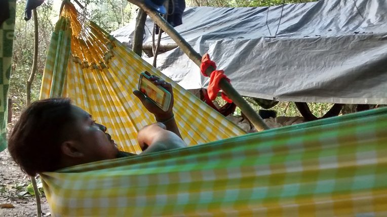 One night, in an indigenous village in the rainforest of southern Guyana, we woke to the muutu’s growl, the outboard engine noise that reveals riverine comings and goings. Dogs barked, and we returned to sleep; the men who went to work gold were home. The next day, I joined a circle around a cell phone displaying images of creeks, forest camps, and young men posing with their tools. “Akuknon komo ishe wasï. Bluetooth kasko!” someone called. I want those pictures. Do Bluetooth!