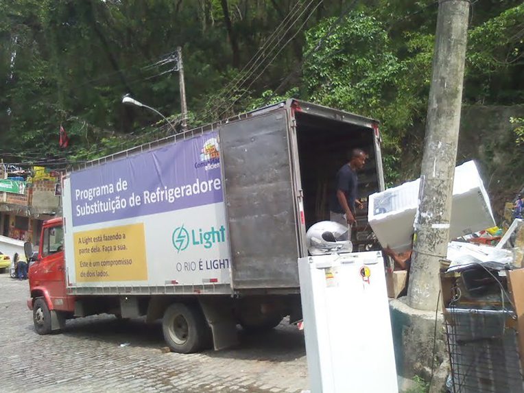 In 2010, a fleet of box trucks delivered 33,000 brand-new, energy-efficient refrigerators to Rio’s poorest communities, known as favelas. The side of the delivery trucks bore a message of reciprocal interdependence: “Refrigerator Substitution Program: Light is doing its part. Do yours. This is a commitment with two sides.”