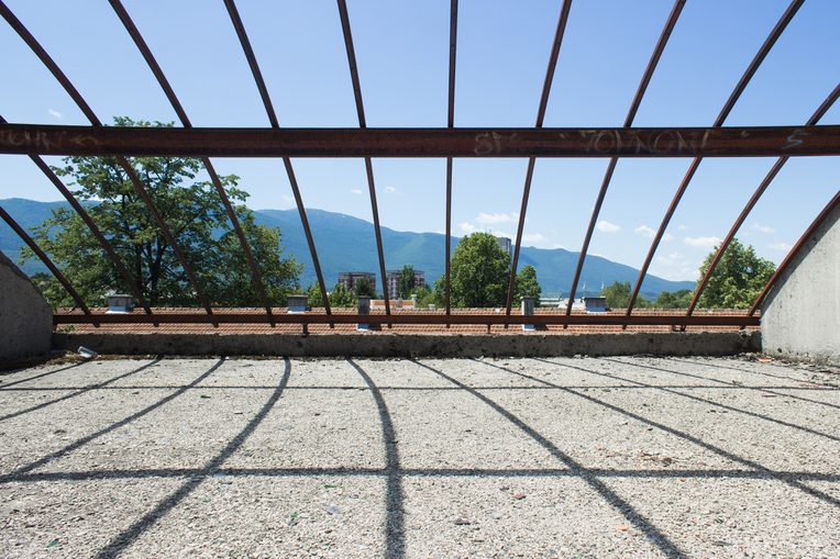 The building—as well as the lives of the workers it was supposed to accommodate—was violently interrupted by the Bosnian war in 1992. At that moment, Dom was half-finished, already a ruin both physically, because its building was interrupted and its maintenance neglected (see Gupta 2018), and symbolically, since it represented unmaterialized socialist order and the “future past” (Koselleck 2004) it never delivered. Subsequently, Dom became caught in the transformation between war and peace, communism and democracy, and socialism and capitalism. During the war, Dom harbored multiple forms of nonhuman life, such as stray dogs and wild plants, which suggested abandonment, lack of maintenance, but also possibility. It is also during the war, while most people were preoccupied with their physical survival, that this community property was converted by those in power into state property, which, unlike community property, could be privatized and sold. Dom penzionera, along with numerous other institutions, found itself on the capitalist frontier and at the center of transitional ambiguities and processes. In this context, new actors and institutions were crystallized, including the new state, sub-state institutions, cantons, municipalities, the international community, and private interests. At the intersection of postwar processes (movement of people, ethnicization of property, etc.) and postsocialist transformations (privatization of property), Dom penzionera had been suspended unfinished, boarded up with planks and bars. Its intended residents, the former socialist workers, never entered the building, but others did.