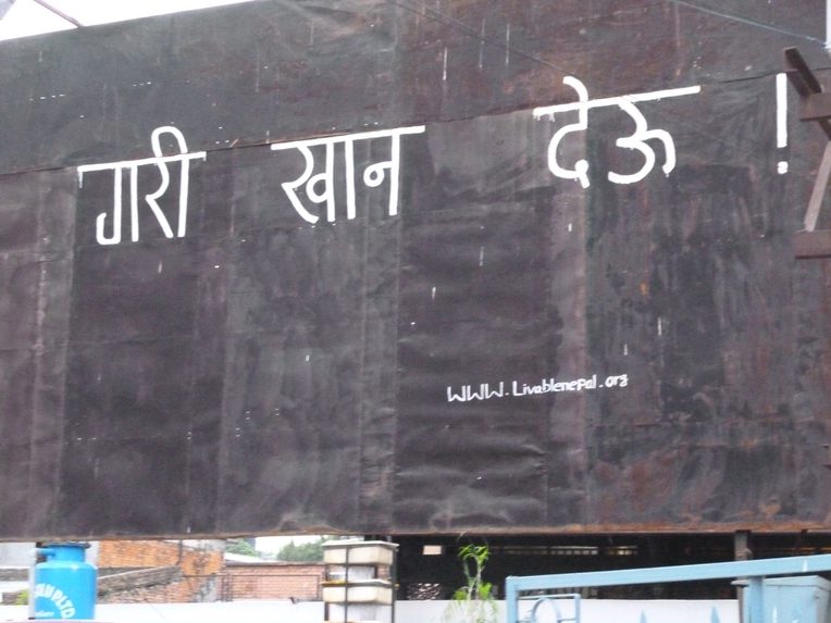 Instead of a postconflict future, various youth organizations suggest a different metamorphosis, turning away from state-oriented chronology and calling for a more radical disjuncture with past politics. If war is politics by other means, these groups seem to grasp onto the postconflict as a potential moment to end any form of politics. In the ideas and expressions they have introduced into popular culture there is a confluence between anarchic and libertarian rejections of the state. For example, the Campaign for a Livable Nepal—often represented by its motto Gari Khana Deu—advocates a focus on everyday life improvements rather than politics, while the Organization for Responsible Nepalis (BibekSheel Nepali), which declares independence from all political forces, calls for citizens to take responsibility for their own prosperity.3 Similarly, recent popular songs in Nepal mock the Constituent Assembly (e.g., “Neta-ji” by Joint Family International) and at times call for an outright end to politics (e.g., “Araajakta hos” by Rai Ko Ris).4 Traditional politics in Nepal seem to offer little to these youth, as one song asks: “How much longer will you [the politicians] distract the people in the name of search for a New Nepal?”5