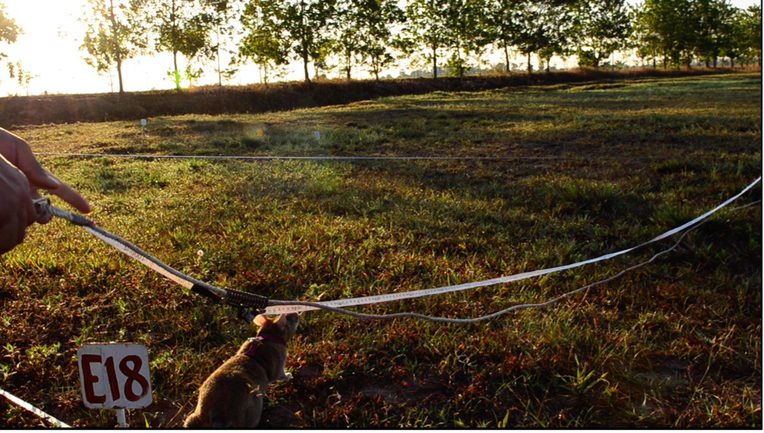 Before the arrival of rats, deminers in Cambodia used metal detectors or dogs to find explosives. To conduct either technique, a platoon divided into individuals-as-units and each person combed through a section of the minefield with their respective means of detection held out before them. While platoons of deminers work as teams, without rats the work is choreographed in rows of individual people laboring under a hot sun. Deminers rarely looked up because they needed to focus on the ground. Most minefields I visited during research trips were characterized by tedious and silent work.