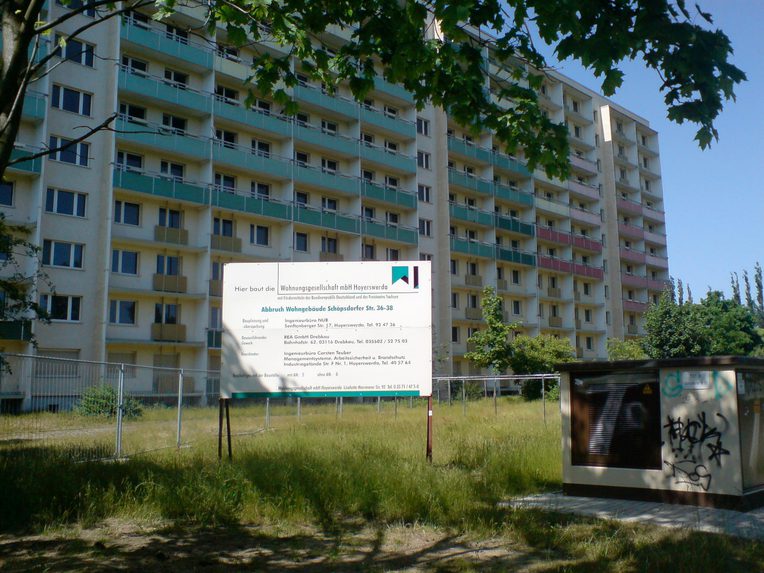Faced with an increasingly less attractive housing stock, high renovation costs, and severe outmigration, the formerly equally people-owned communal and cooperative landlords (the two main owners of the East German housing stock) pleaded for help from the federal government. The Stadtumbau Ost program promised to “clear” the East German housing market (den Wohnungsmarkt bereinigen). It connected funds for demolition to funds for paying off these debts. German taxpayers, for that matter, paid off artificial debts tied to houses thus readied for unbuilding—to the benefit of the private banks owning these debts. A different, but related kind of redistribution.
