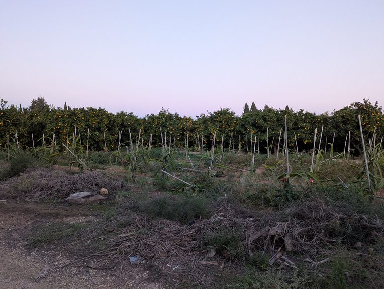 Besides the appearance of my grandfather that weekend, another (less kin-like) spectral appearance was that of the cluster bomb. On Monday July 29, 2024, a cluster bomb revealed itself next to our house in the south. Growing on our land were mainly orange and lemon trees, with some olive, avocado, and fig trees as well. We also had a new section of dragon fruit trees that my brother and mother had planted after the economic collapse, as a new income-generating project for the family. The cluster bomb made an appearance in this new section of the dragon fruit trees.