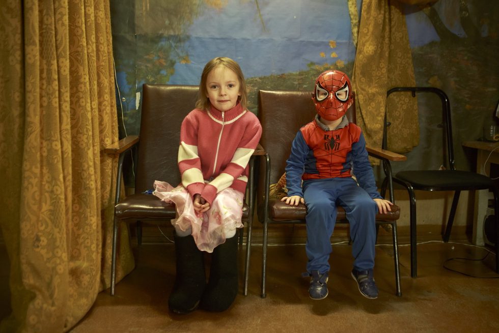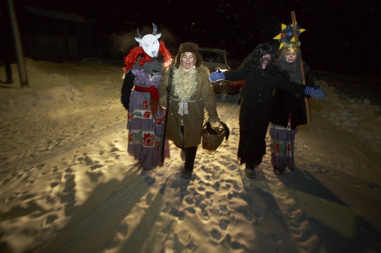Carolers walk down the street on the night before Russian Orthodox Christmas. “Let’s stay at home, it’s too cold,” aays one. The reply: “But last year we did, even though it was about forty below. We won’t take the kids with us. But as for ourselves, we must go, because ten houses of neighbors are waiting.” Following the traditions of Christmas Eve, the workers at the House of Culture turn into carol singers. January 6, 2014.