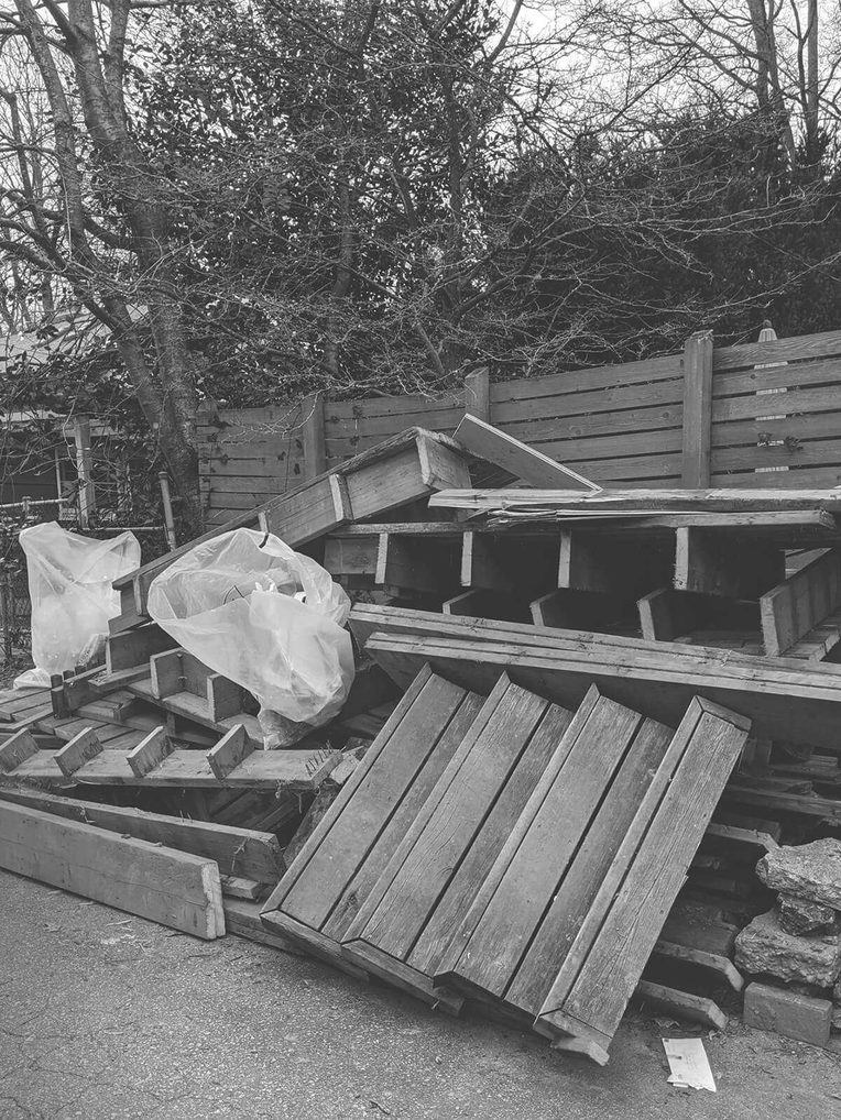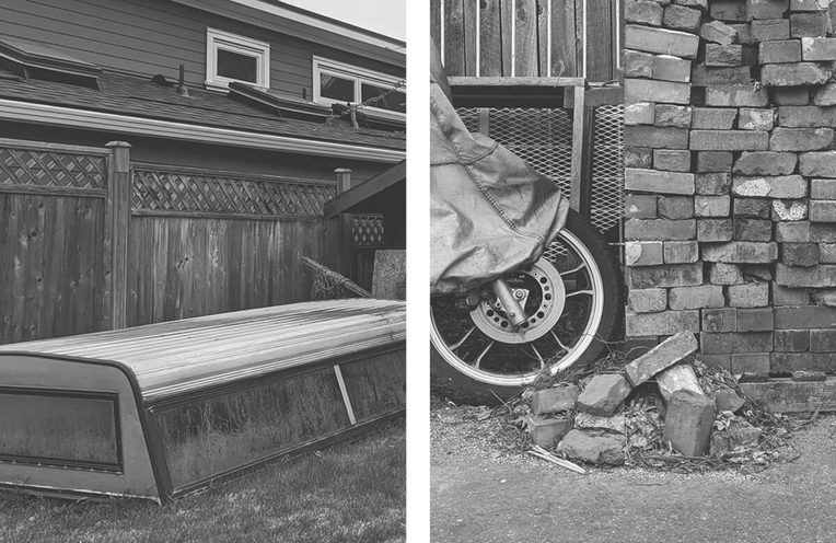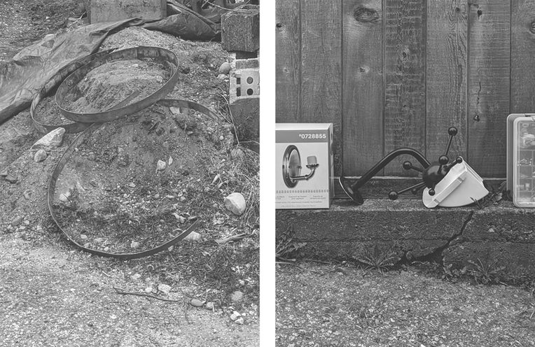 Street fronts, on the other hand, are mixed up in curb appeal: issues of status, bylaws, and other municipal and informal regulatory regimes. In the front, the pleasures of tinkering or tending-to are accompanied by domestication as a neighborly value forged in the join of civic pride and moral hygiene. Out back, by the outbuildings and overgrowth, the social and landscape architectures are makeshift. Carports stash unusable lengths of rebar and lumber. Property lines are breached with trash. Insurance hazards and zoning grey areas proliferate. The alley makes evident the slippages of demography, where rich and poor alike run out of room and cast off what is unwanted—where both the spoils of hoarding and make-do projects are beholden to a calculus of exhaustion.