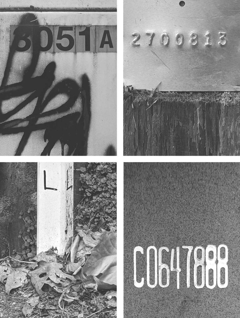 No doubt, alleys are data rich, conscripted into planning, wayfinding, utility, and governance apparatuses as zoning and land use spreadsheets and databases, lidar scans and orthophotography, sewage and waterworks maintenance dockets, metering devices, and easement agreements. At the scale of my alleys, everything is tagged: from numbered wifi transmission towers, telephone poles, and city-owned electrical cabinets to property line stakes and refuse collection, recycling, and compost bins (figure 3). One might easily conduct a nonhuman census. The enumerations and IDs evidence what Donna Haraway (2013, 161–64) calls the “informatics of domination”—the translation of world into a problem of code. Algorithmic approaches to data have become such central forms of knowing and doing that “other candidates for this role, such as air, the economy, evolution, the environment, satellites, and so forth, are understood and explained through computational concepts” (Berry 2012, 1). Coding cedes the messy relationality of world to colonial ranks of being and extractive ways of knowing. As Eve Tuck and K. Wayne Yang (2014, 811) caution, coding ethnographic, interview, survey, and other data is not immune to settler civilities of knowledge.