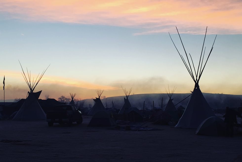 Our attunement to settler atmospherics can perpetuate further injury (see Stevenson 2014). It can be pathologized as anxiety, paranoia, or conspiracy in an atmosphere of uncertainty and half-knowing. At Oceti Sakowin, too, we experienced various suspensions: of time, bodies, affects. Anticipation of state violence became a rhythm, with constant low-flying helicopters, floodlights, and a large militarized police presence creating a tension that settled deep into muscles. The forces of strangulation were viscerally felt at Oceti Sakowin camp as water protectors faced