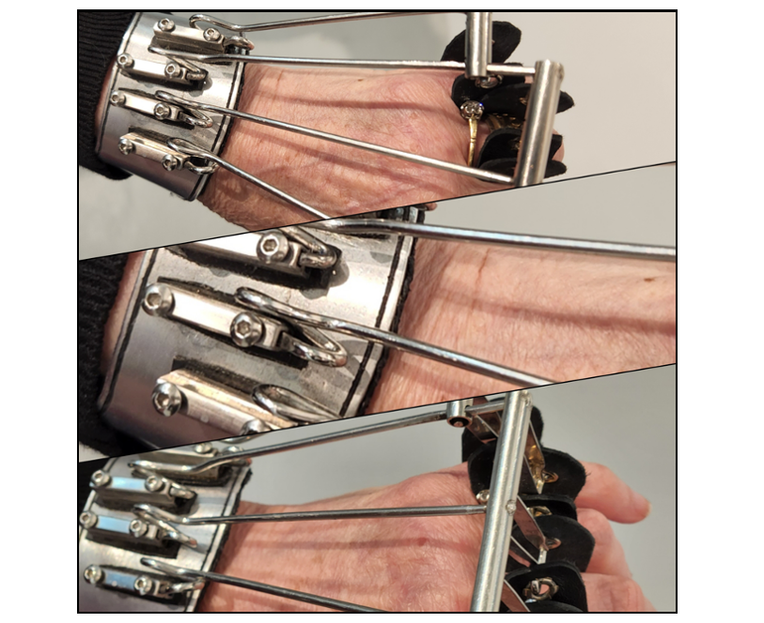 On my left hand, I wear a brace of aluminum, stainless steel and leather. Neither obviously jewelry nor prosthetic, it attracts and confuses. It invites engagement, though; it is a vehicle of introduction, story-telling, and memoir. But my brace and I are not fungible. Perplexed by the unexplained palsy, people look for palliation: Are you right handed? they ask. Well, yes. Good, then. Try getting up each morning with one hand.