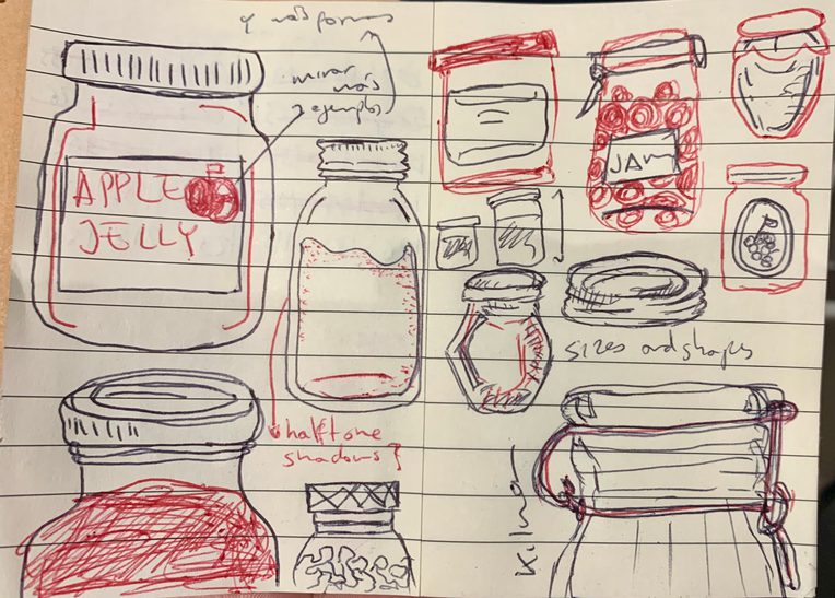 The jar made this especially clear. Photographing my own hand holding a similar jar helped me understand that part of the object’s ethnographic force did not reside in its shape alone, but in its handling: gripping, unlatching, opening, placing, keeping, and withholding from reuse. The photographs also made visible the jar’s translucent materiality, its scale, and the relation between hand, lid, possible label, and container—details that became crucial once the essay had to be translated into a sequence rather than a static image. My notebook sketches remained exploratory and unresolved, still trying out proportions, labels, lids, and possible contents. The digital draft began to impose another order, converting the jar from an object-study into a manual panel. Following the jar from staged photograph to notebook sketch, digital draft, and final manual made visible what the project taught me: manual-making did not simply stylize ethnographic material; it re-specified it.