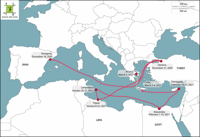 The Elbeik and Karim Allah are two old cargo ships used to carry livestock across the Mediterranean. In late December 2020, both ships had a cargo of live cattle from Spain destined for Turkey. Neither was permitted to offload the cattle in Turkey: the Turkish authorities said the paperwork showed that the animals came from Aragon, a region of Spain that had recently reported an outbreak of bluetongue disease. The captains of both ships protested that the certificates for the cattle showed that they were safe, but to no avail; they were not permitted to offload their cargo.