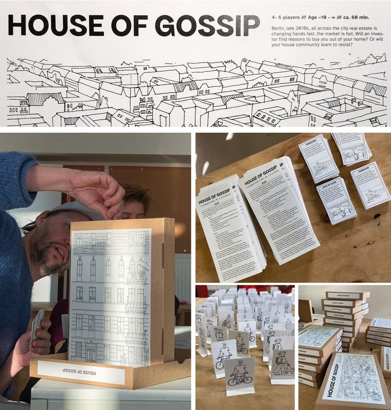 The second story is based on a year-long ethnography course entitled The Only Game in Town? Anthropology of Housing and Real-Estate Markets in Berlin, which Tomás Criado and I co-taught in 2018–2019 (Farías and Criado 2023). The course invited students to ethnographically explore the calculative and technopolitical practices shaping these markets. Student projects examined these practices within the moral economies of real estate agents, city-owned building companies, and housing cooperatives, as well as the social life of policy and legal instruments. Toward the end of the course, we organized a three-day workshop to prototype games based on students’ ethnographic insights. The workshop was held at Haus der Statistik, one of the field sites previously discussed.