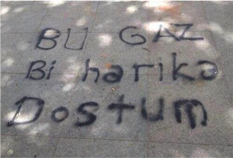 Much has been made of the creativeness displayed during the Gezi protests, especially the slogans and stencils that multiplied along with the protesters from May 28, 2013, onwards. Combining longstanding political critiques, references to popular culture, and commentaries on the inner dynamics of the protests (images 1 and 2), these visuals did not simply express the diversity of those taking part, but together suspended the limits of what had been deemed legitimately sayable.