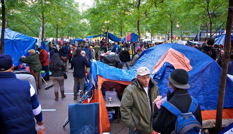 Occupy Wall Street burst spectacularly onto the scene with the take-over of New York City's Zuccotti Park on September 17, 2011, followed by the rapid spread of occupations to cities throughout the US and the world. The movement combined mass occupations of urban public spaces with horizontal forms of organization and large-scale, directly democratic assemblies. Making effective use of the viral flows of images and information generated by the intersections of social and mass media, the occupations mobilized tens of thousands around the globe, including many new activists who had never taken part in a mass movement before, and inspired many more beyond the physical encampments themselves. Before the wave of violent police evictions in November and December of 2011 drove activists into submerged forms of organizing through the winter, the Occupy movements had already captured the public imagination. Bequeathing to us potent new memes such as the 1% (those at the top of the wealth and income scale) and the 99% (the rest of us), Occupy provided a framework for talking about issues that have been long obscured in public life such as class and socio-economic inequality and helped to shift the dominant political-economic discourse from an obsession with budget deficits and austerity to a countervailing concern for jobs, equality, and economic fairness.