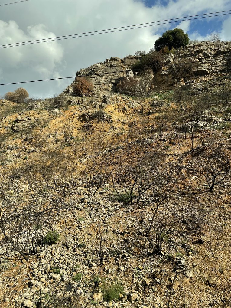 Driving through South Lebanon on December 13, 2024, the evidence of devastation is everywhere. From Nabatiyeh to Khiam, the landscape is a mosaic of destruction. The colossal Shqeef citadel (also known as the Beaufort castle) surveys vast stretches of blackened olive trees and charred forests alternating with thin rivulets of green, spared by chance or geography. The sight of the Khardali bridge over the Litani River is haunting, flanked by barren patches that speak of white phosphorus’s reach. The air itself seems heavy with the memory of fire; the skeletal remains of pine and oak stand as solemn witnesses to the assault.