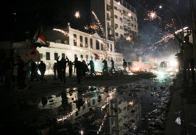 Provocateurs on the payroll of the secret service were also responsible for lighting up rubbish bins in the streets of Abdeen on fire. Their purpose might again have been to create fear and chaos (and of course to feed the state media discourse portraying the events as acts of vandalism). But the real outcome was often the opposite: small localised fires in the side streets of Abdeen helped the fighters: they lit up the streets whose public lights had been off for the whole week, and more importantly, they acted as morale-boosters, adding to the dramatic battlefield mise-en-scene in which the line between what was a real fight and what was sport was increasingly blurred.