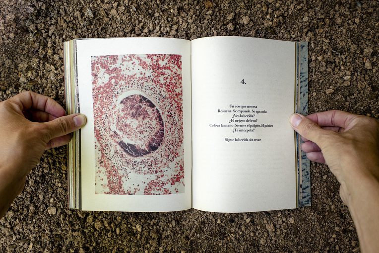 The bodily experience, being there and placing the senses in space, allows to tear layer after layer, bark after bark, to weave a fragmented story, composed of varying pieces, sewn together to form the spine of this book. The archive composing this search, however, is decentered. The documents come from oral testimonies transmitted by campesinos (peasants), fragments of a travel diary, extracts from official documents, press notes... All these sources are interwoven in order to bear witness to the injustice, turning towards us as bystanders of these denied or distorted facts, as if they had not existed. Facts silenced by the ignominy that their public misrecognition represents. This way of constructing the book, by means of a plethora of layers and sources of information, corresponds in real life to the way in which these mothers had to reconstruct what happened to their sons after years of disbelieve and lies by official authorities.