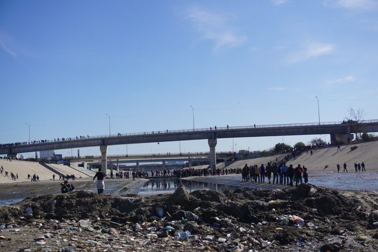 La gente se dispersa, nadie seguro de a dónde ir, pero con la vista siempre fija en la garita. Cruzan un canal lodoso de aguas negras. Cambian de ruta, brincan vallas. Algunos tiran piedras. Otros intentan trepar el muro. Los únicos que utilizan la fuerza, sin embargo, son la patrulla fronteriza estadounidense y la policía. Cuando un grupo de migrantes se acerca al muro, oficiales uniformados lanzan gases lacrimógenos y balas de goma. Ese grupo se desintegra. Al otro lado del canal, en territorio mexicano, vuelvan a disparar. Esta vez, pegan a la gente.