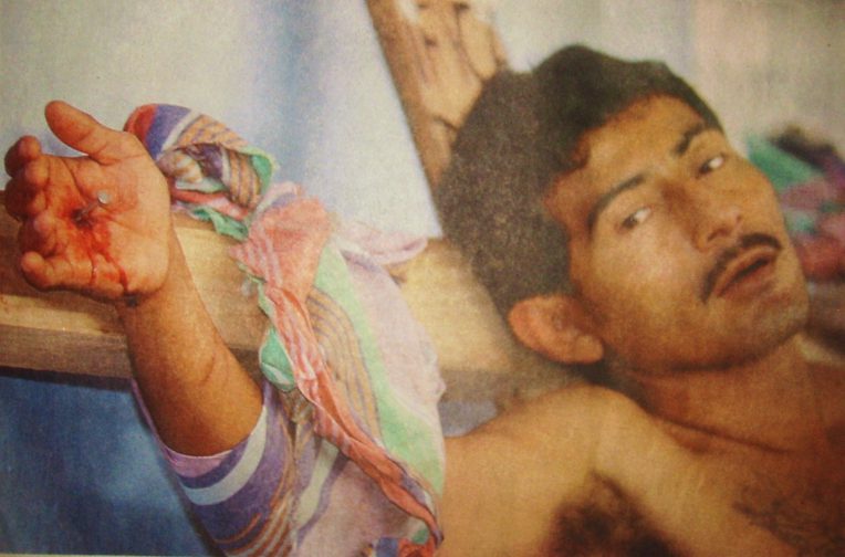 No. 5 "The protest tactic of staged crucifixions ... grew popular in Guayaquil during the 1980s and 1990s, with symbolic victims tied—although not nailed—to wooden crosses."