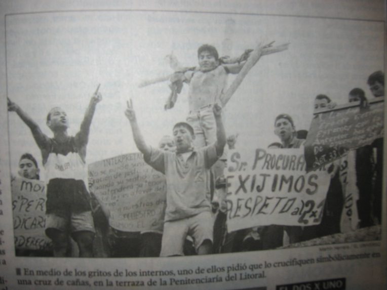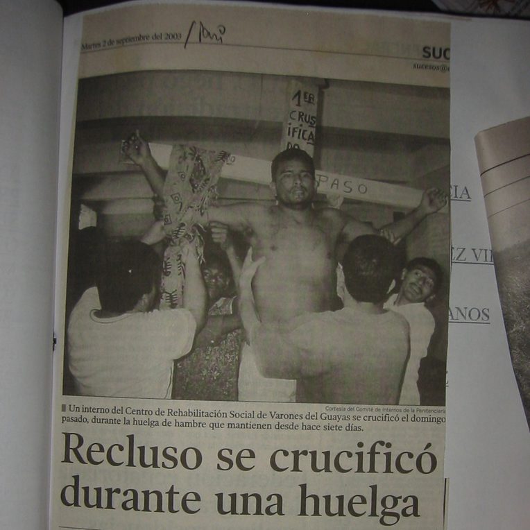 No. 1 This following photo essay by Chris Garces culls images related to a 2003 prison protest in Guayaquil, Ecuador in which the participating inmates had themselves literally crucified in order to denounce their indefinite, unconstitutional detainment. It provides a window into the largely obscure rationale and the hidden growth of penal state politics.